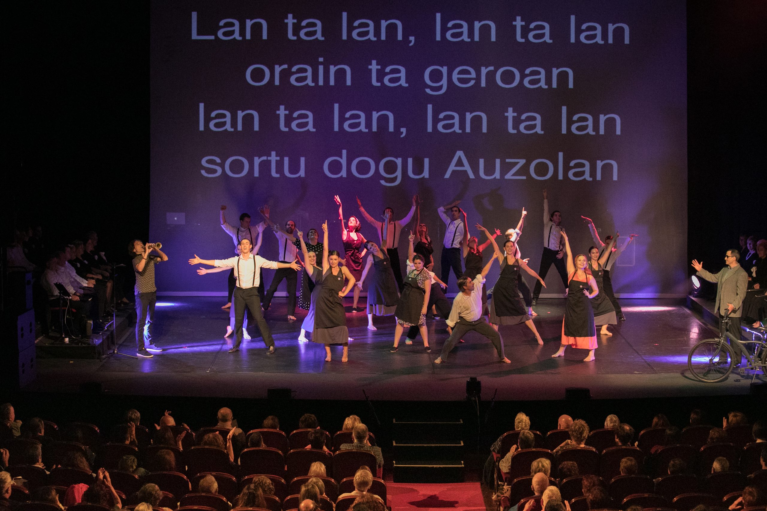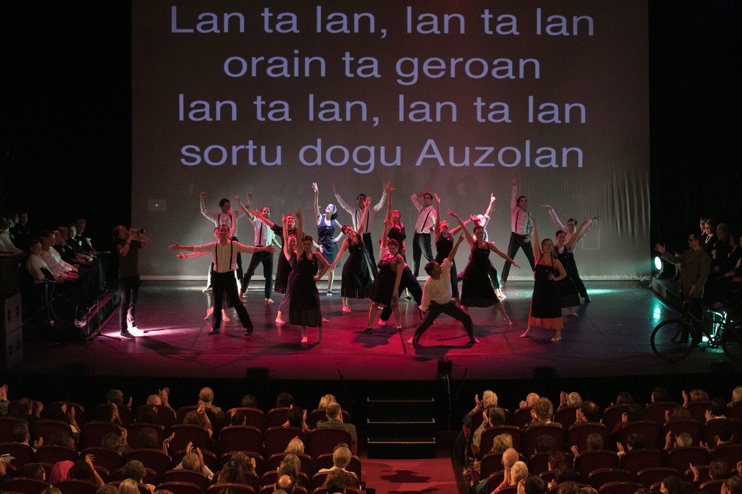 Publikoa gerra ostera eraman zuen eszenografia berritzaile batekin, Arrasateko Esperientzia Kooperatiboaren sorrera bizi ahal izan zen, euskal soinu tradizionalak osagai garaikideekin uztartuta, erro, ahots, bizitza eta leku jakin batetik sortzen diren istorioak kontatuz eta kantatuz, egungo erronken durundan barneratzen den itxaropen istorio bat bizitzeko.